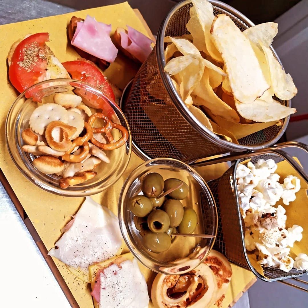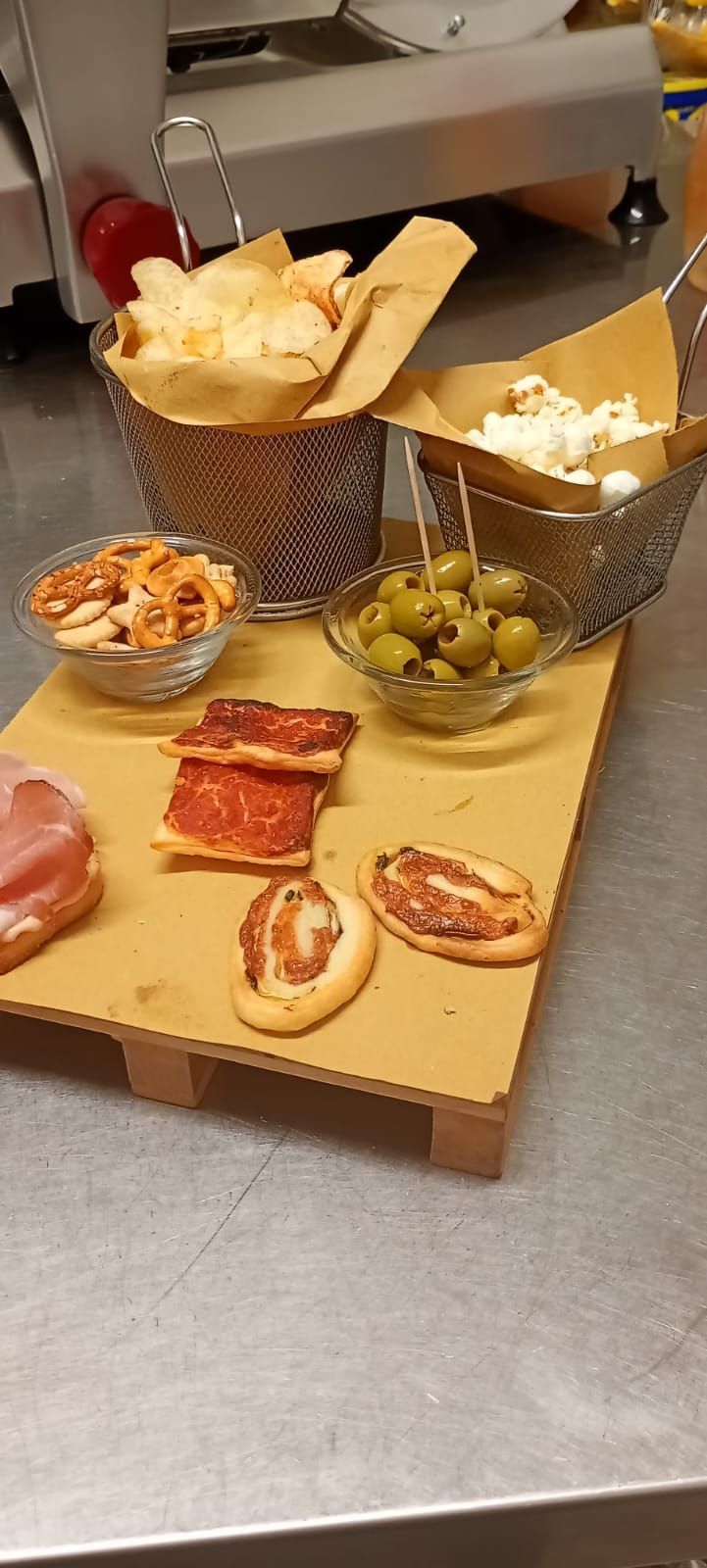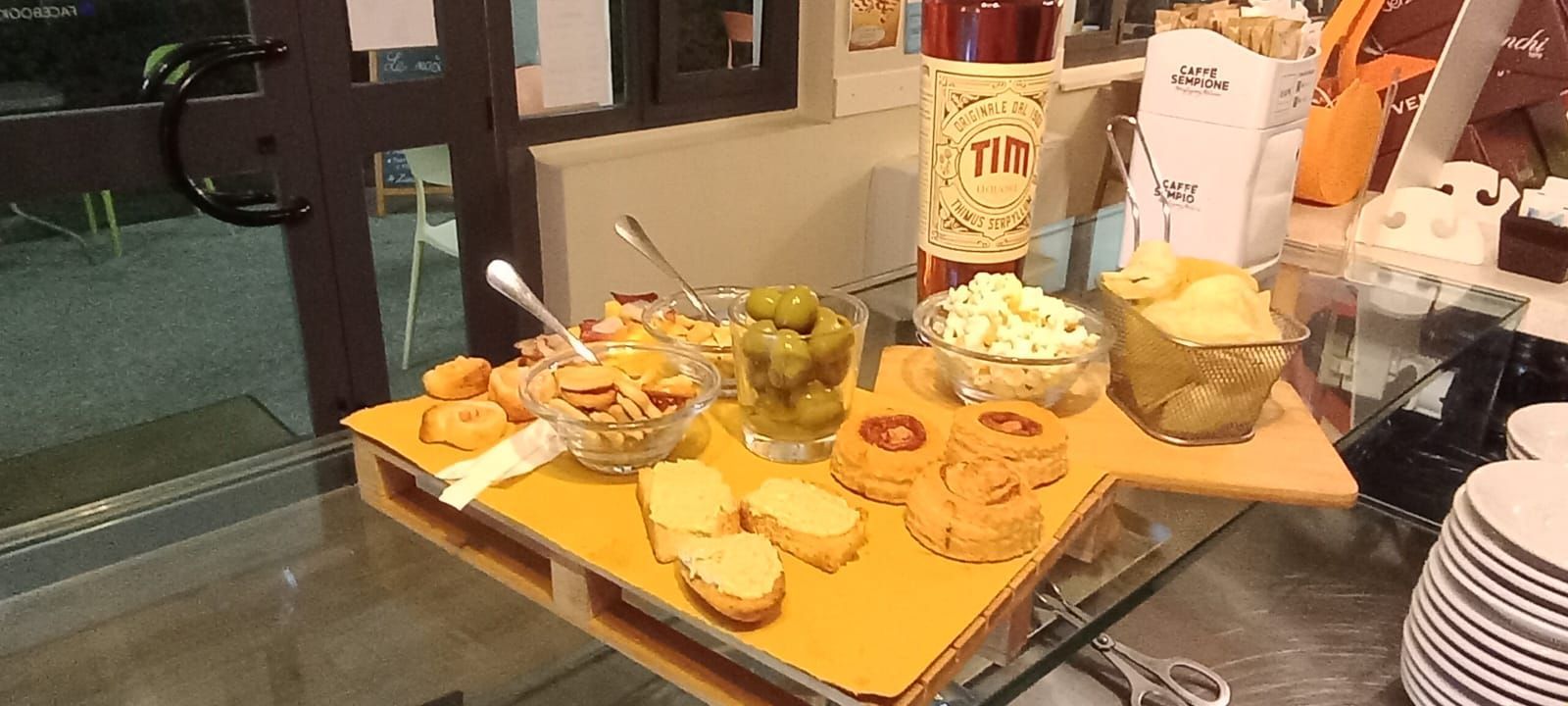 Aperitivo con stuzzichini (inclusi) oppure con piatti scelti dal menù(taglieri, salumi e formaggi a pagamento)