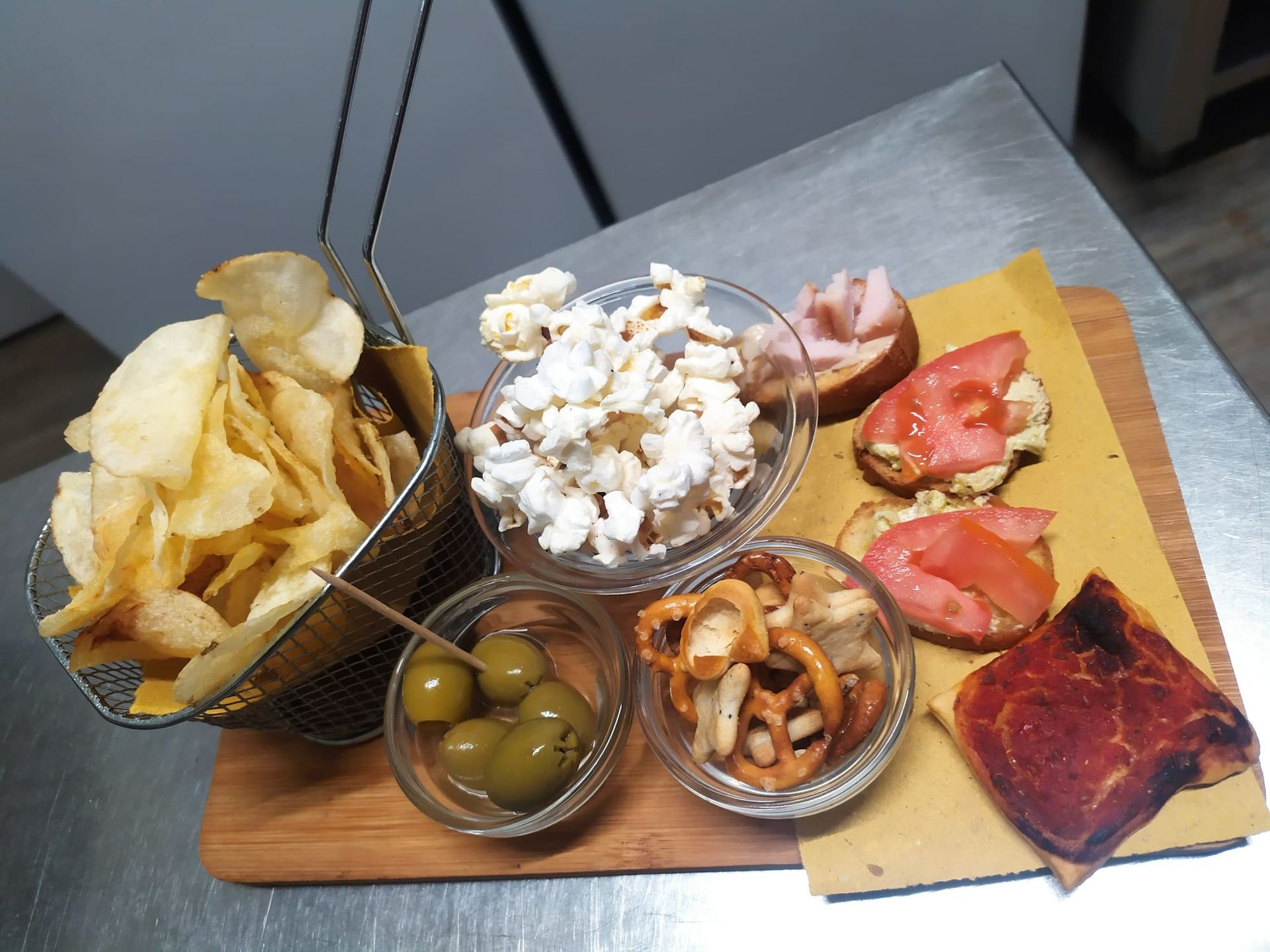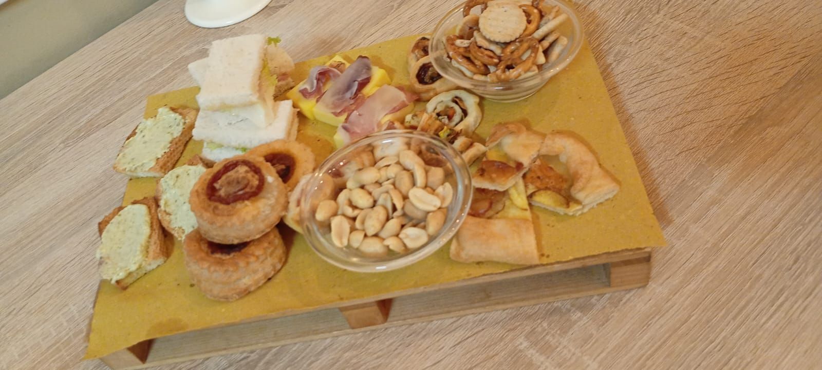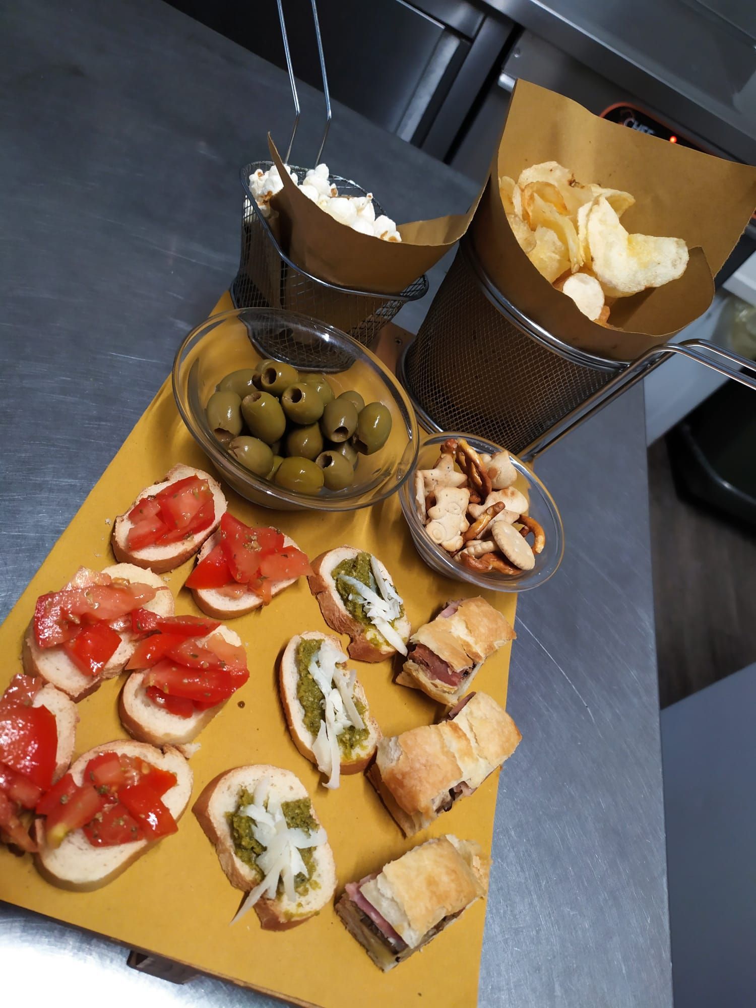 Aperitivo con stuzzichini (inclusi) oppure con piatti scelti dal menù(taglieri, salumi e formaggi a pagamento)